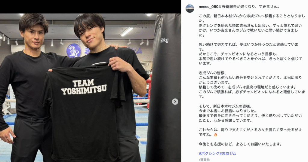 2025年12月、菊池音央は所属を【志成ジム】に移したと報告。